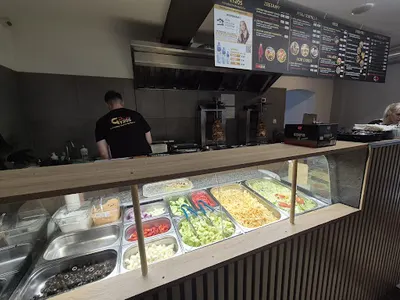 Gyros Polska to restauracja szybkiej obsługi zlokalizowana przy ul. 1 Maja 42B w Jastrzębie-Zdrój, która zdobyła solidną reputację wśród lokalnych miłośników kebabów. Z oceną 4.5/5 na podstawie 62 opinii w Google, miejsce to wyróżnia się na tle konkurencji, oferując przede wszystkim gyros z kurczakiem w polskim wydaniu – w formie tortilli, pity lub na talerzu z frytkami i surówką. Klienci chwalą soczyste, dobrze doprawione mięso przygotowywane na miejscu, bez użycia przemysłowych półproduktów, co nadaje mu autentyczny smak. Świeże warzywa, domowe sosy (w tym dobrze zbalansowany ostry i czosnkowy) oraz przystępne ceny – np. 25 zł za porcję w picie – sprawiają, że porcje są syte i uczciwie wycenione. Obsługa to kolejny atut lokalu: miła, komunikatywna i profesjonalna, co buduje przyjazną atmosferę. Rodziny docenią kącik zabaw dla dzieci z nuggetsami i ziemniaczanymi buźkami, a miłośnicy nowości – opcję falafela czy czarną bułkę. Choć niektórzy narzekają na tortillę, która czasem się rozpada, lub okazjonalne niedociągnięcia jak wentylacja czy spalone fragmenty mięsa, ogólny werdykt jest pozytywny. Gyros Polska wnosi świeżość do jastrzębskiej mapy fast foodów, łącząc solidną jakość z lokalnym klimatem. (198 słów)